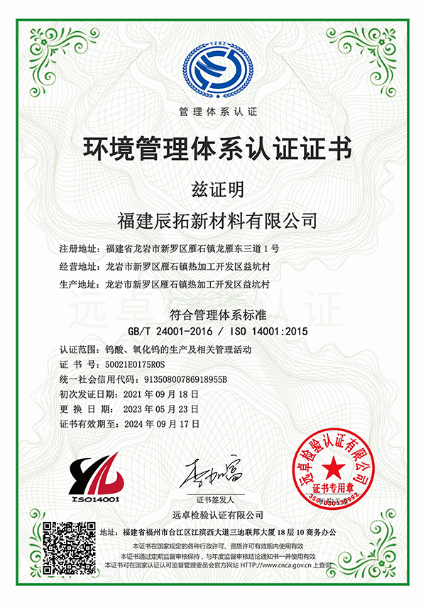 環(huán)境管理體系監(jiān)督認證證書