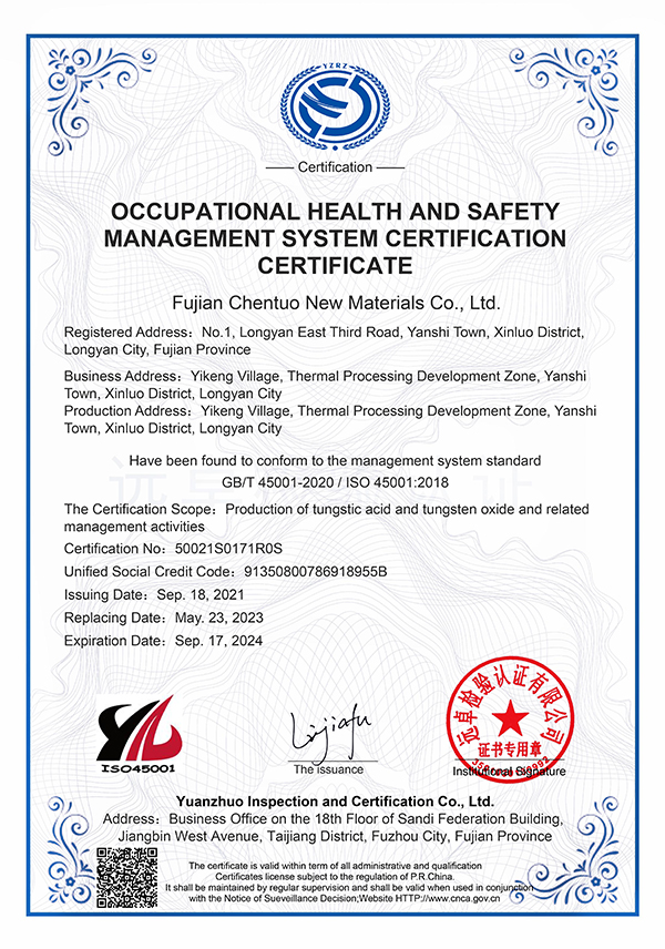 職業(yè)健康管理體系監(jiān)督認證證書